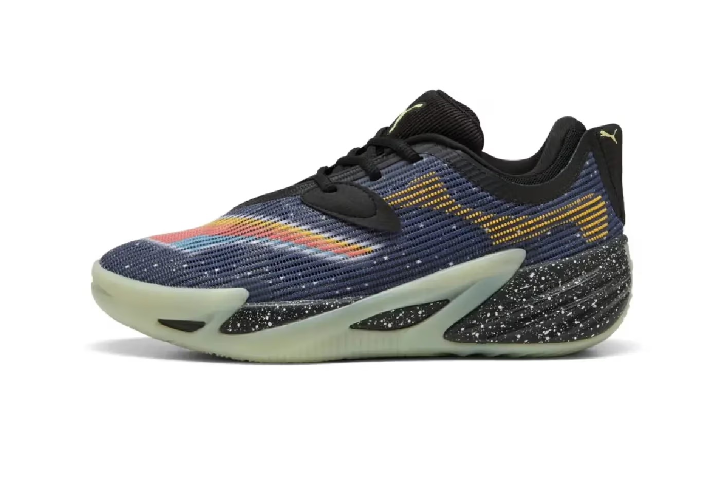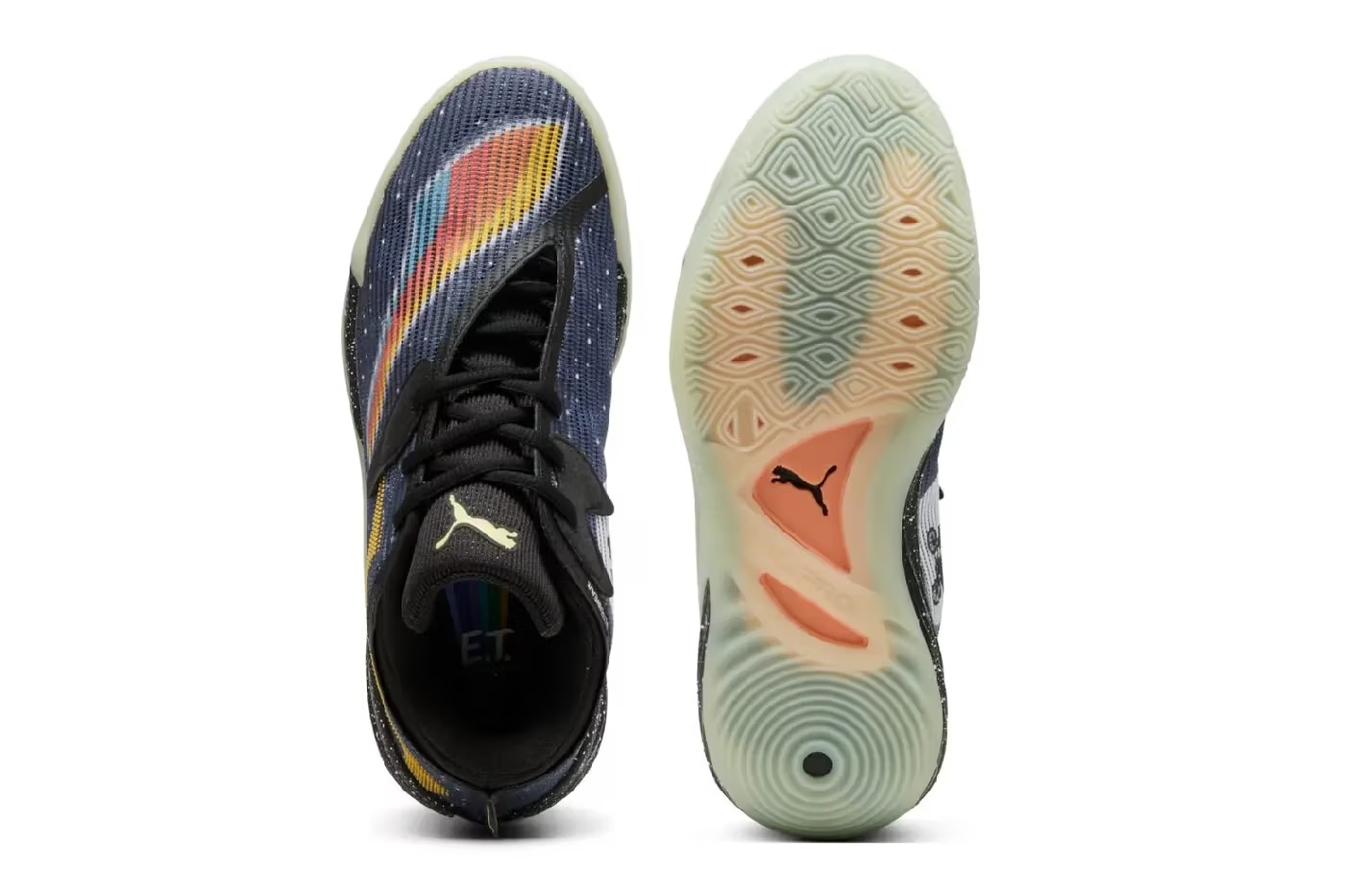 “The collection centres on PUMA’s signature performance basketball shoe, combining brand’s latest technology with E.T.‘s nostalgia. PUMA’s signature All-Pro Nitro 2 is renewed with details such as a starry mid-sole, space-inspired design and the classic scene of E.T. and Elliot riding their bike through the night sky.”