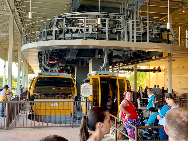 I had the pleasure of riding the Disney Skyliner last night. It’s a very enjoyable way to travel between the two parks and four resorts on the line. EPCOT, Disney’s Hollywood Studios, Caribbean Beach Resort, Riviera Resort, Art of Animation, and Pop Century. The main hub is at Caribbean Beach. We took this photo there, but it was for Cast Member previews.