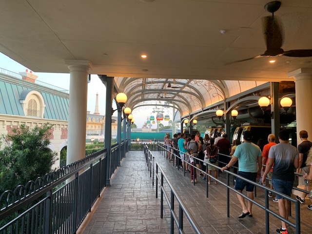 We were able to do all the routes except going from Caribbean Beach back to Hollywood studios. The line went down just as we were to step into the cabin. We walked over to the internal bus stop where they had buses to take us back to the park.