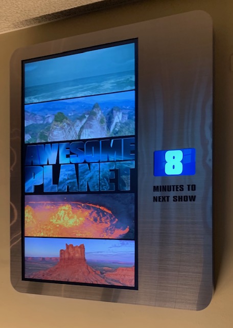 This new film is where the old Timon and Pumba film used to be shown. The carpet on the walls is still there! The film is narrated as if you were shopping the market for a new home, pointing out the benefits of Earth. There’s some humor thrown in with laugh-out-loud moments. Towards the end, the mood changes and shows you the very real effects that climate change is having. It concludes showing you what people around the globe are doing to make things better and shows you some Disney resources you can look into. There are some effects like lightning in the theater when it’s on screen.