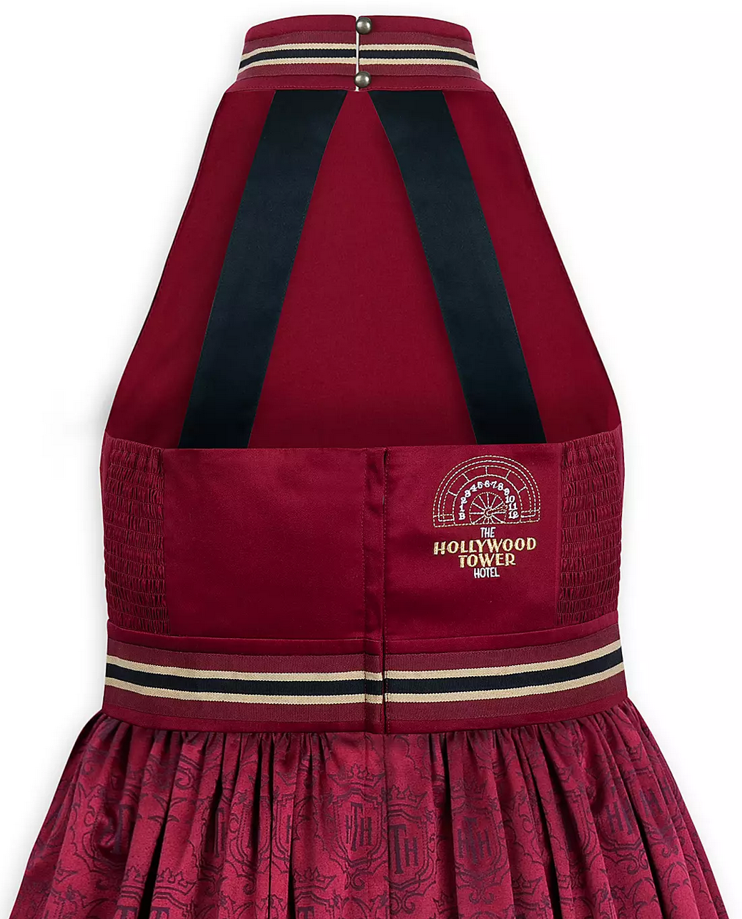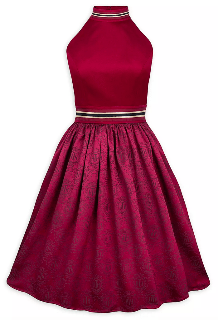Well, just drop me down an elevator shaft! Disney has a new Hollywood Tower of Terror halter dress and it’s amazing! Would you look at the deep reds and the HTH print?! That’s Hollywood Tower Hotel, if you didn’t know. It’s so sleek and sexy. I just love, love, love this dress!