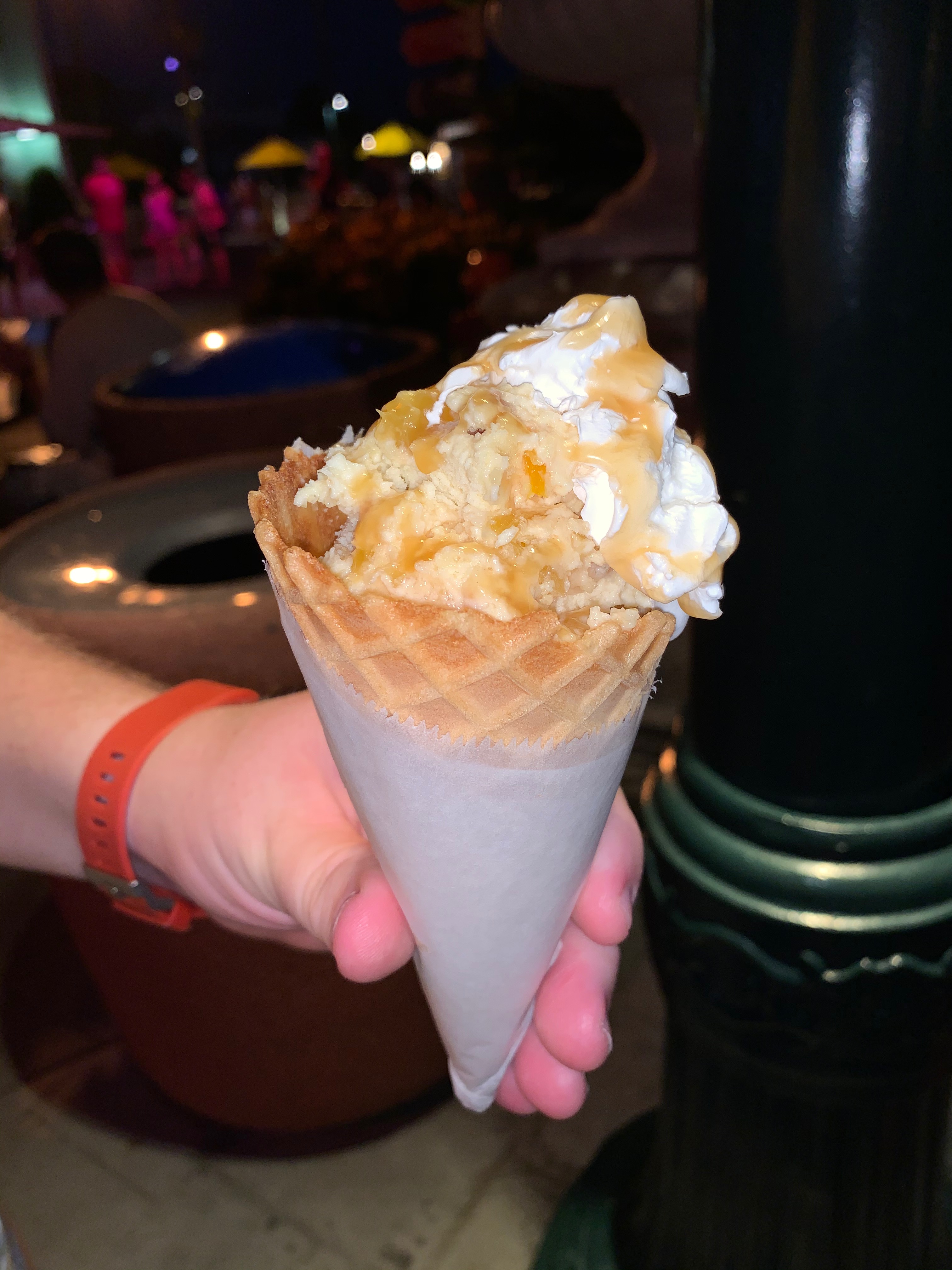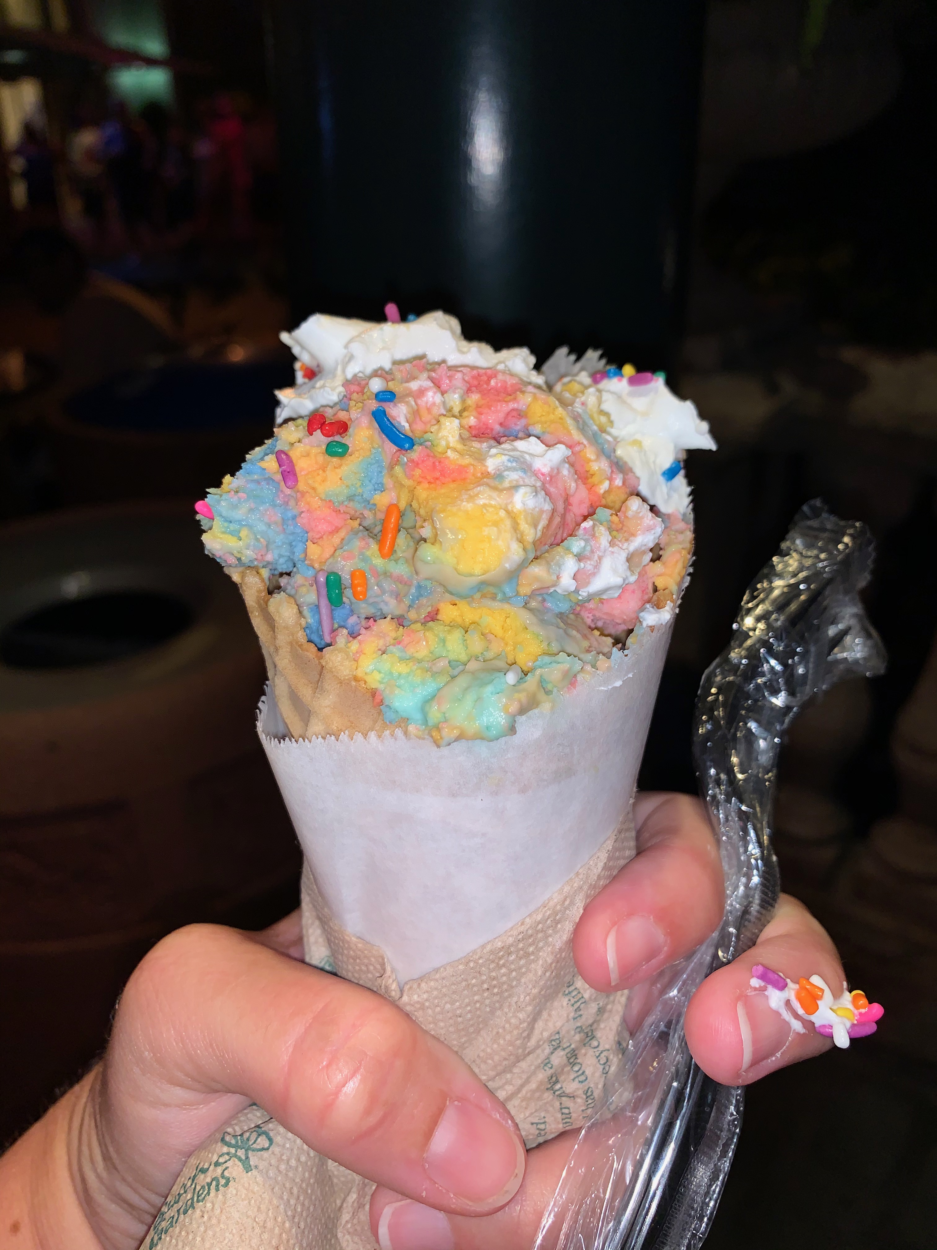 Both of the cheesecake cones had whipped cream topping them. It’s so hot outside that I took a step away from the booth and it fell straight onto my shoe. I was sitting across from the booth and watched it happen to another guest, but it missed her shoe. Lucky for her.