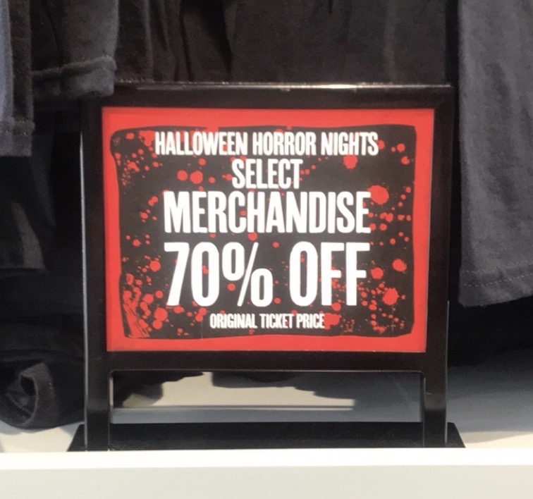 It’s almost Halloween and HHN merchandise is getting some deep discounts! They really want to clear it out with 50%-70% discounts. If you have an annual pass or are a UOTM, your discount stacks!