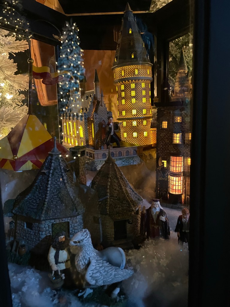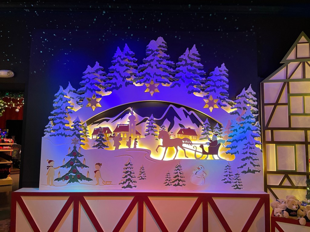 The first room is a traditional German Christmas. It’s full of snow and wonder. It’s really beautiful. You’ll find collections of Universal merchandise here.