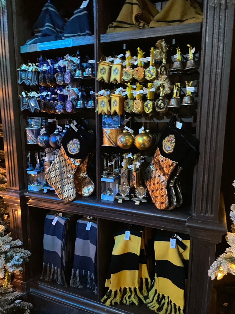 Next you’ll enter the Wizarding World of Harry Potter. This room was going to be themed after the Yule Ball. Warner Brothers nixed that two weeks before opening and after much of the room had been come. They thought it was going to be on a much larger scale and didn’t approve of the small room. Even though we’re not getting the Yule Ball, the room is quite lovely. You can have personalized embroidery done here.
