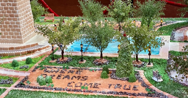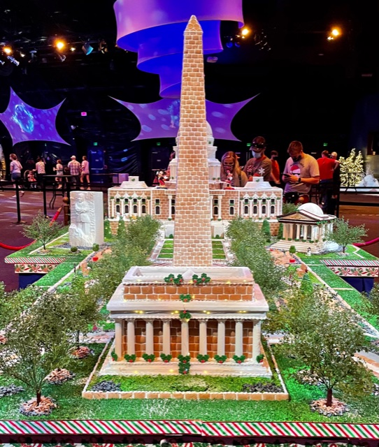 This wonderous gingerbread city was created by Disney Chefs. It’s a patriotic homage to some of the United States’ most iconic landmarks including the United States Capital Building, Martin Luther King, Jr. Memorial, and a five-foot tall Washington Monument.