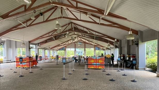 At Wild Arctic plaza, there is live music and a DJ. Over in the pavilion, there is another DJ and live music. You will also see dancers there. There were several people joining in! They have a bunch of tables in the pavilion with dominoes you can play with your friends and family.