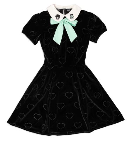 The most important thing about this Bride of Frankenstein dress is that it has pockets. It has a zipper back and embroidered collar. This is so super cute and I would totally wear it all the time.