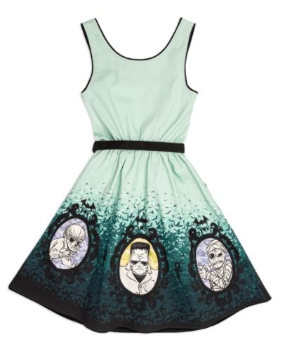 This tank-style Universal Monsters dress has an elasticized back. Framed with distressed flocking details along the bottom of the skirt are the Bride of Frankenstein, Frankenstein, Dracula, Creature from the Black Lagoon, Wolf Man, and the Mummy. Again, the best feature of this dress is that it has pockets. This is right up my alley because it’s so hot and humid in Florida.