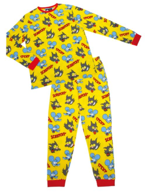 There are two sets of PJs. Itchy and Scratchy in yellow and Bart’s Krusty the Clown PJs in green.