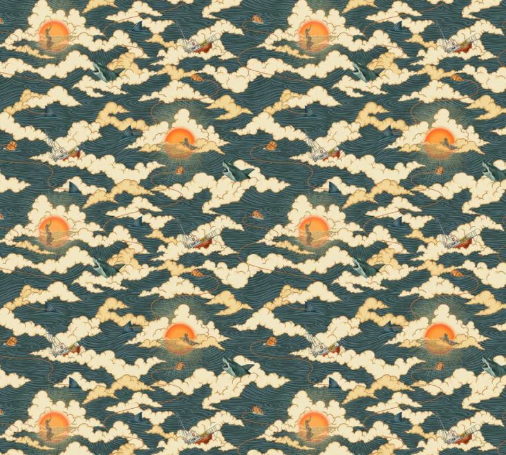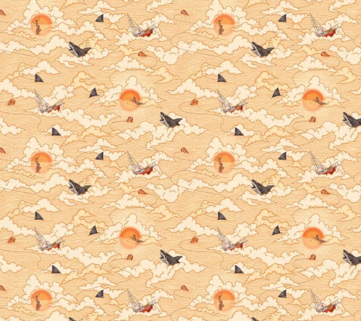 You’re gonna need a bigger room for this Jaws wallpaper. The “Amity Sunset” wallpaper comes in four colors. I really like this paper as well. Bruce is frolicking in the waves and the Orca looks like it’s about to sink. You could put different colors in different rooms and go full Amity in your house.