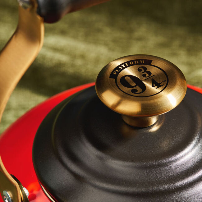 Hogwarts Express Kettle – The tea kettle has the Hogwarts Express 5972 on the front of the spout. The gold knob has the famous Platform 9 3/4 on the top. $120