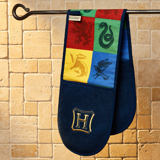 Hogwarts Houses Potholder – This unique potholder has angold-threaded, embroidered Hogwarts crests and features all four houses. $50