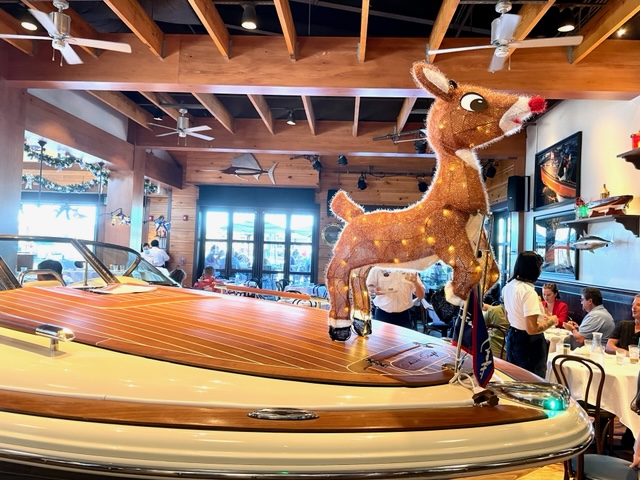 Their Christmas decor is gorgeous. I didn’t get photos of everything, but here’s a nice sampling. Santa drives a boat with an animated Rudolph on the front!