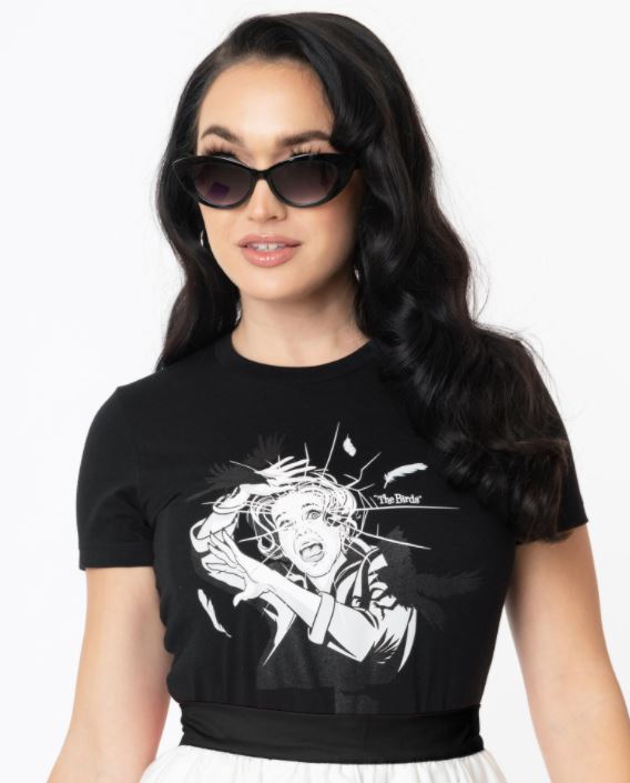 Okay, how often do you see clothes with Alfred Hitchcock’s The Birds? Like never. Alfred Hitchcock: The Art of Making Movies may be long gone, but who cares? Rock these shirts in the park. I remember watching The Birds in class in like middle school. Those were the days.