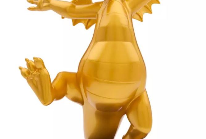 The Figment statue this is a copy of can be seen at EPCOT. The statue is approximately 11″ high. It’s made from 60% resin / 40% stone powder (calcium carbonate). It has a golden finish and sits on a glossy navy base. It’s $99.00.