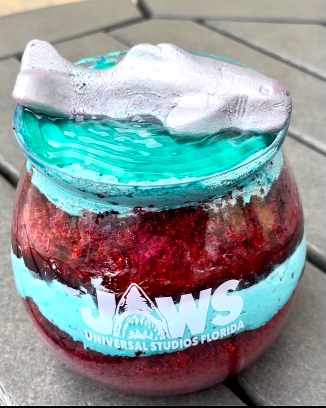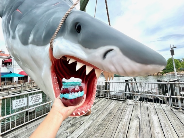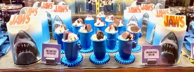 The JAWS Fishbowl Cake was sold out in the Summer Tribute Store when I was there, but I did find it in the San Francisco Candy Factory. Unless you have a mighty sweet tooth, this is too much for one person. It was quite tasty and I love that I am now the proud owner of a JAWS fishbowl.