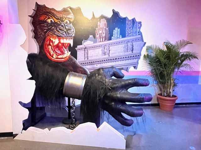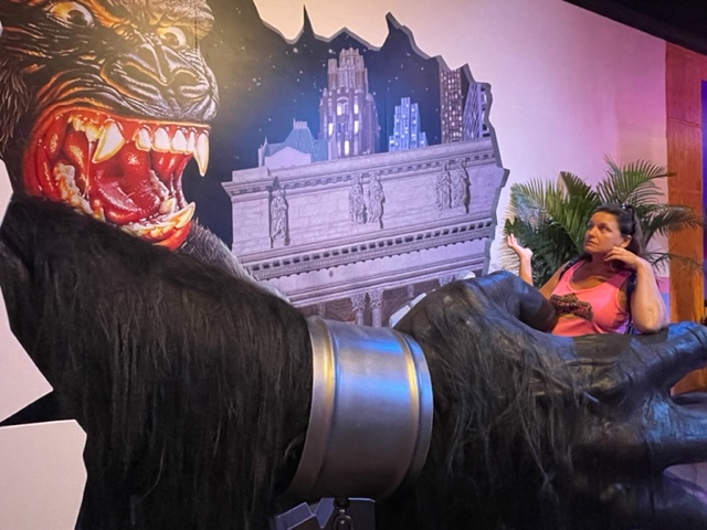Theater 4 is a tribute to retro Universal movies. Normally you’d find the concession stand at the entrance to a movie theater, but here it’s at the end. The case line is full of amazing sweets and treats. There’s a super fun King Kong photo opp near the cash wrap. I’d love to see your shots posted to Theme Park MoJu Groupies!