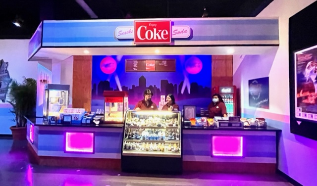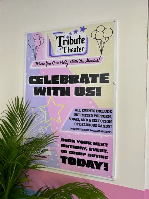 The facade is a movie marquee showing some of our all-time favorites. E.T. the Extra Terrestrial, Back to the Future, and JAWS. The store consists of four theaters, each containing a different theme.