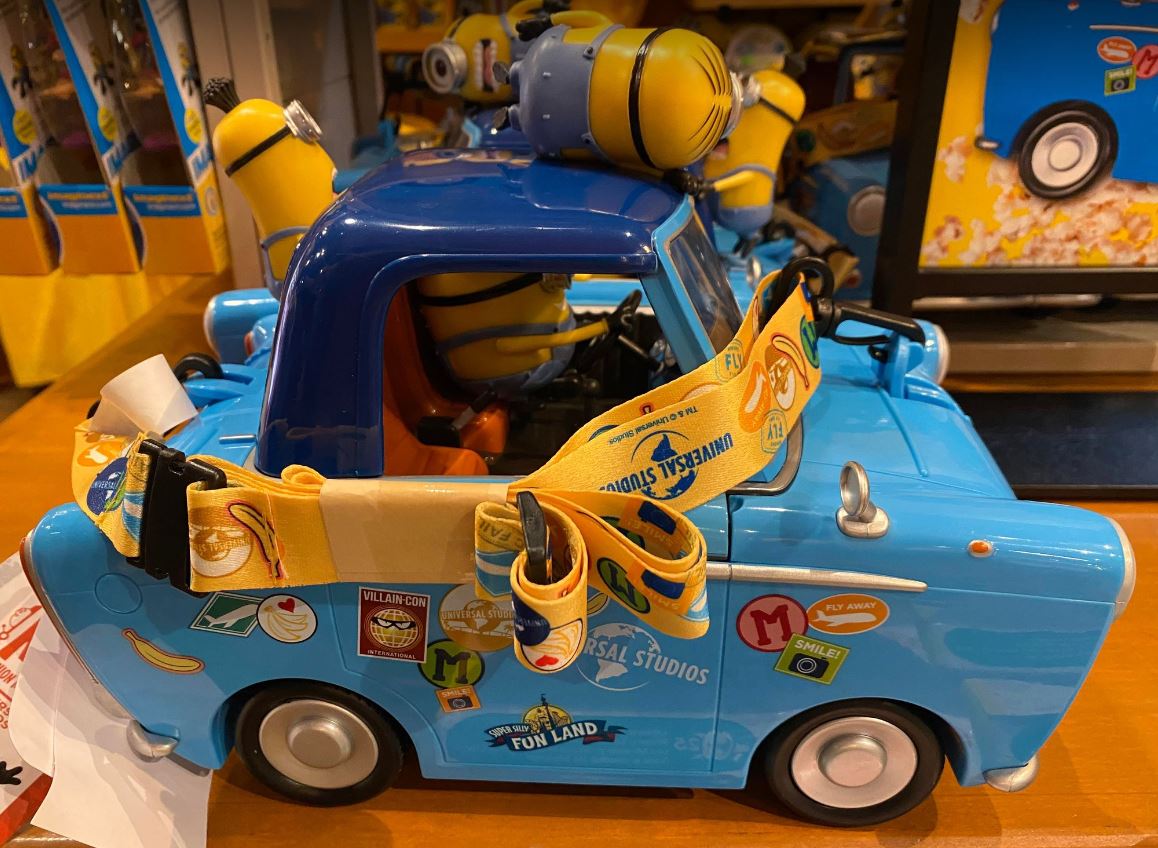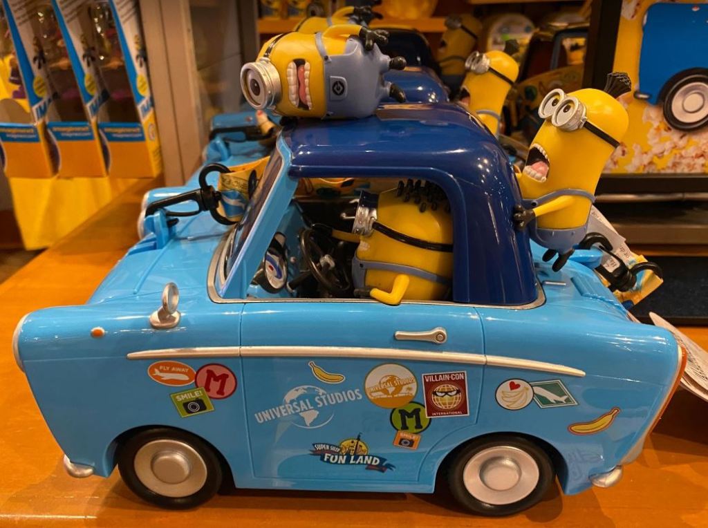 Cuteness overload ahead. There is a new Minion popcorn bucket at Universal Orlando this morning! Check out the details on this super cute popcorn bucket. Each car bucket has a carrying strap, three Minions, and travel stickers.