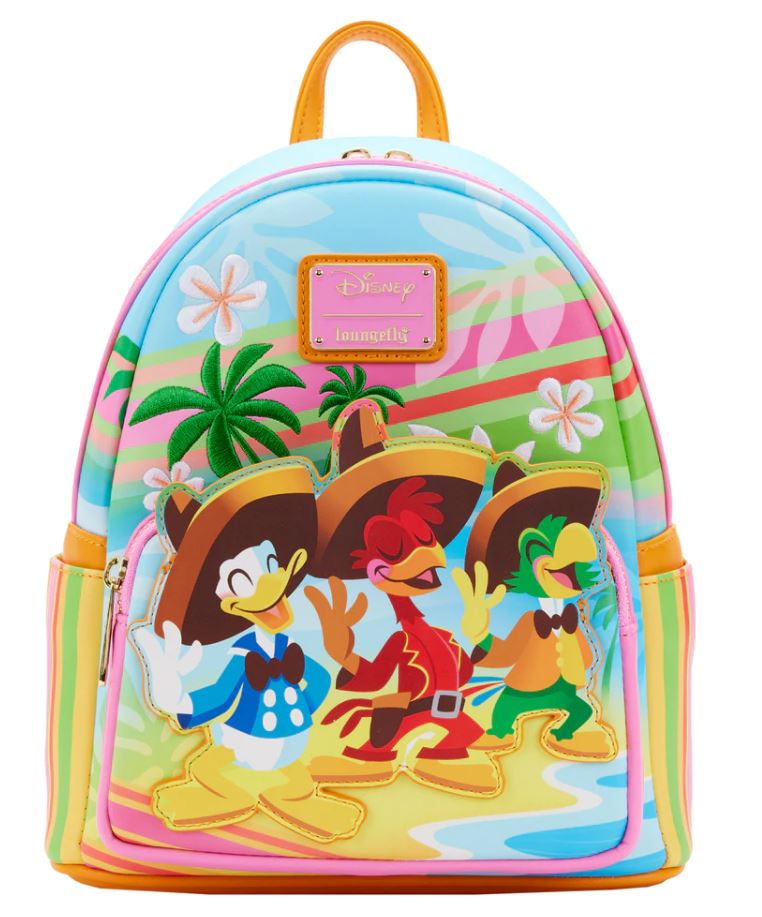 The first to catch my eye, and my heart, is the Three Caballeros Beach Scene mini backpack. I happen to love them and got to see The Three Caballeros in a theater for the 75th anniversary of the movie in 2020. I also love to take a boat ride through Mexico on Gran Fiesta Tour Starring The Three Caballeros at Epcot. The colors on this bag are so much fun!