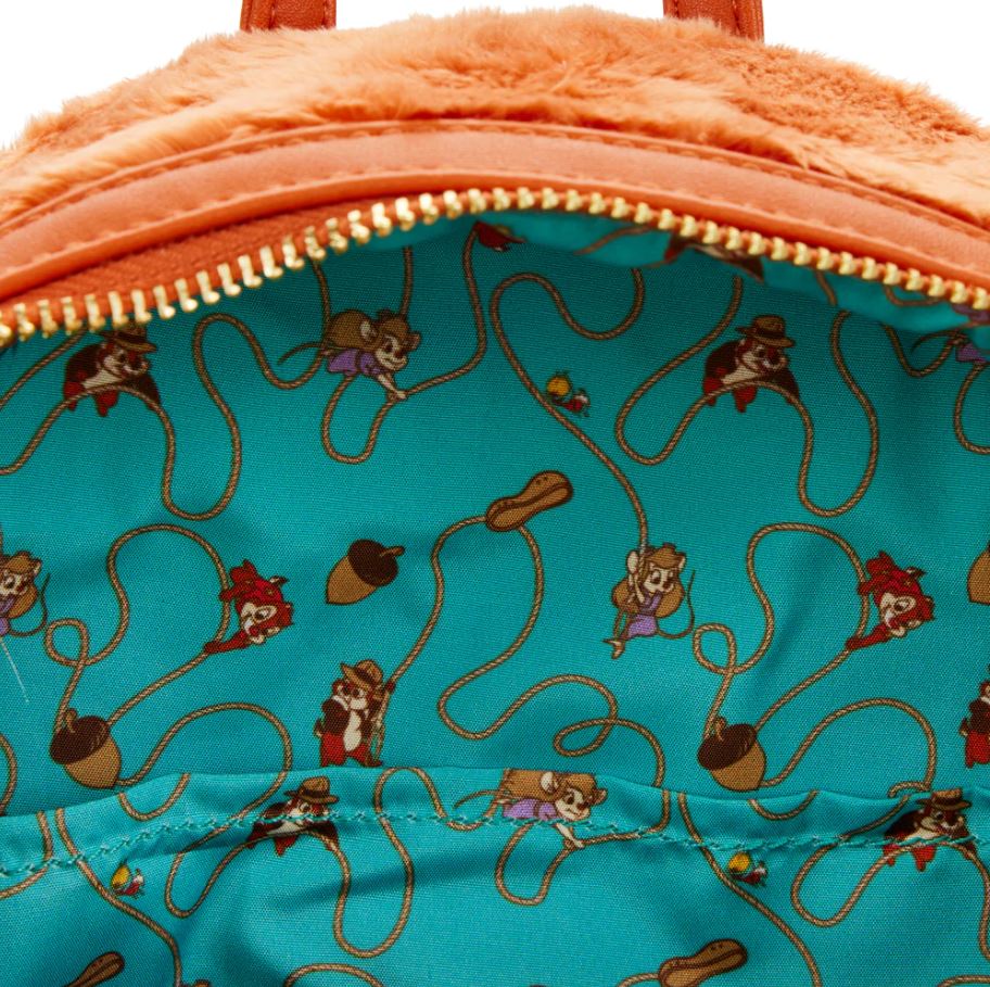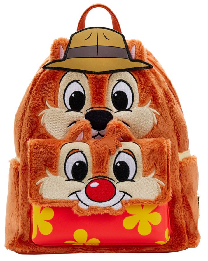 So much furry cuteness with this Chip and Dale Double Cosplay mini backpack. Did you know they were dressed up like Indiana Jones and Magnum, P.I., or have you always lived under a rock? Zipper is on the back with his big ol’ bug eyes. Awww.