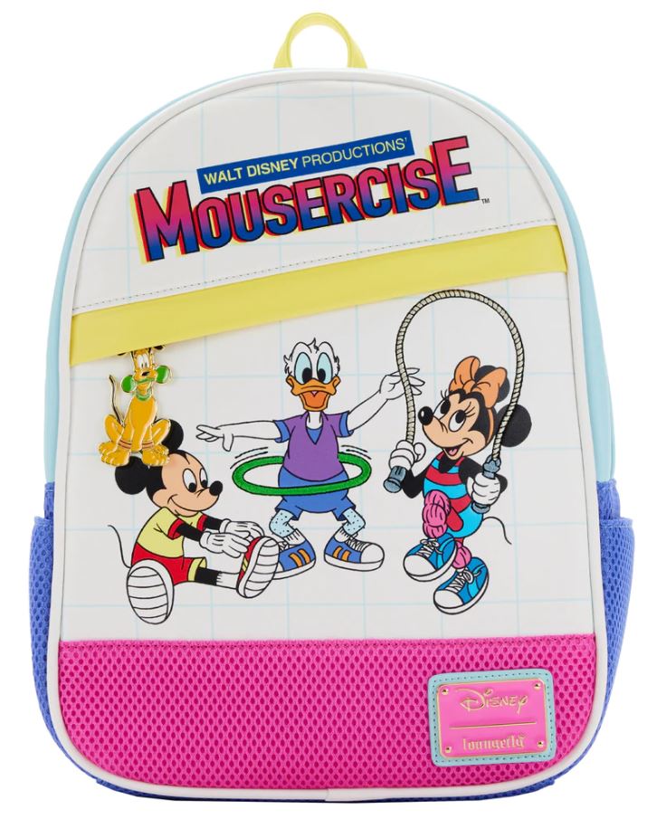 They’re taking it back to the 80’s with this Mousercise mini backpack. How many of you remember this? I love the retro look and bright colors. Pluto is the zipper charm. Time for a workout! Or just a walk in the parks.
