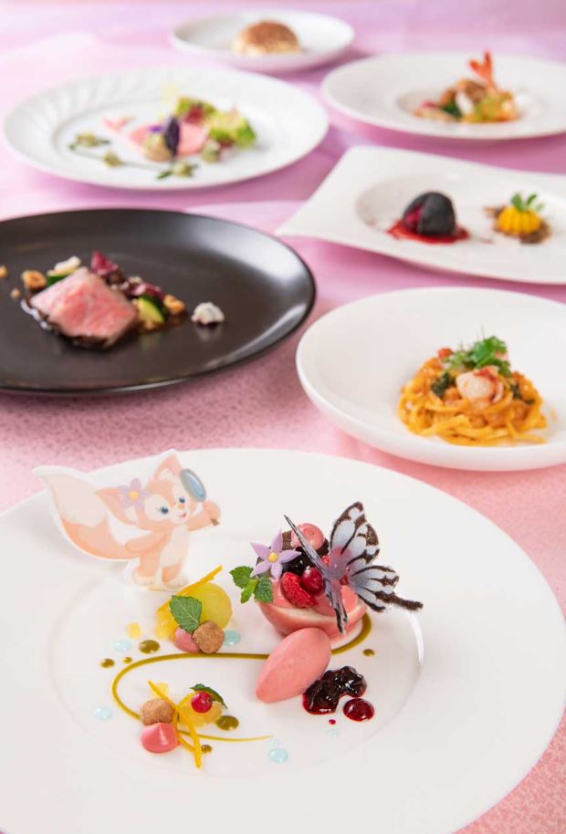 At Tokyo DisneySea Hotel MiraCosta’s Bella Vista Lounge, you will find Lina Bell inspired food and drink. “In the course menu, you can fully enjoy the autumn ingredients, and the appetizers and desserts are decorated with motifs inspired by Lina Bell, so you can enjoy dishes that are pleasing to the eye.”