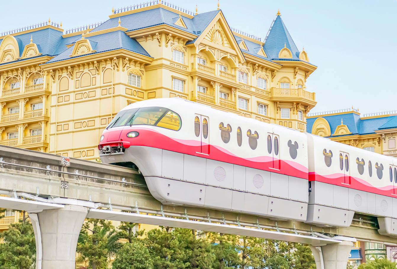 The Tokyo Disney Resort monorail line has four stations and takes approximately 13 minutes to go all the way around.