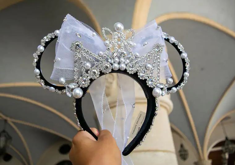 “This sophisticated and elegant tiara headband comes in a black dust bag inside of a black and white color-blocked decorative box with a magnetic closure featuring the Disney | Vera Wang co-branded logo. The box can unfold upon itself to sit at an angle for Guests to showcase their Vera Wang ‘Ears’.”