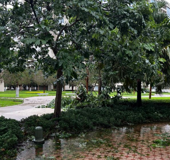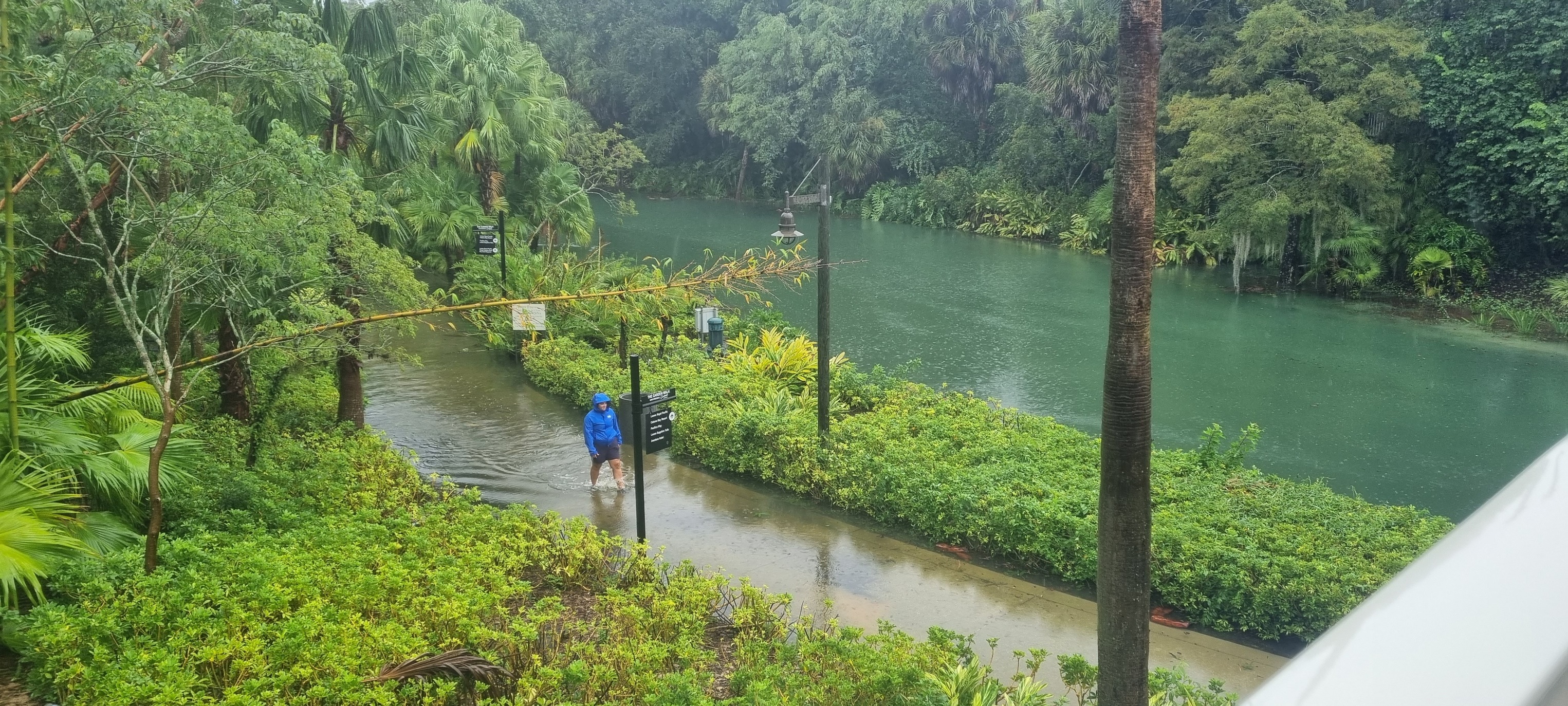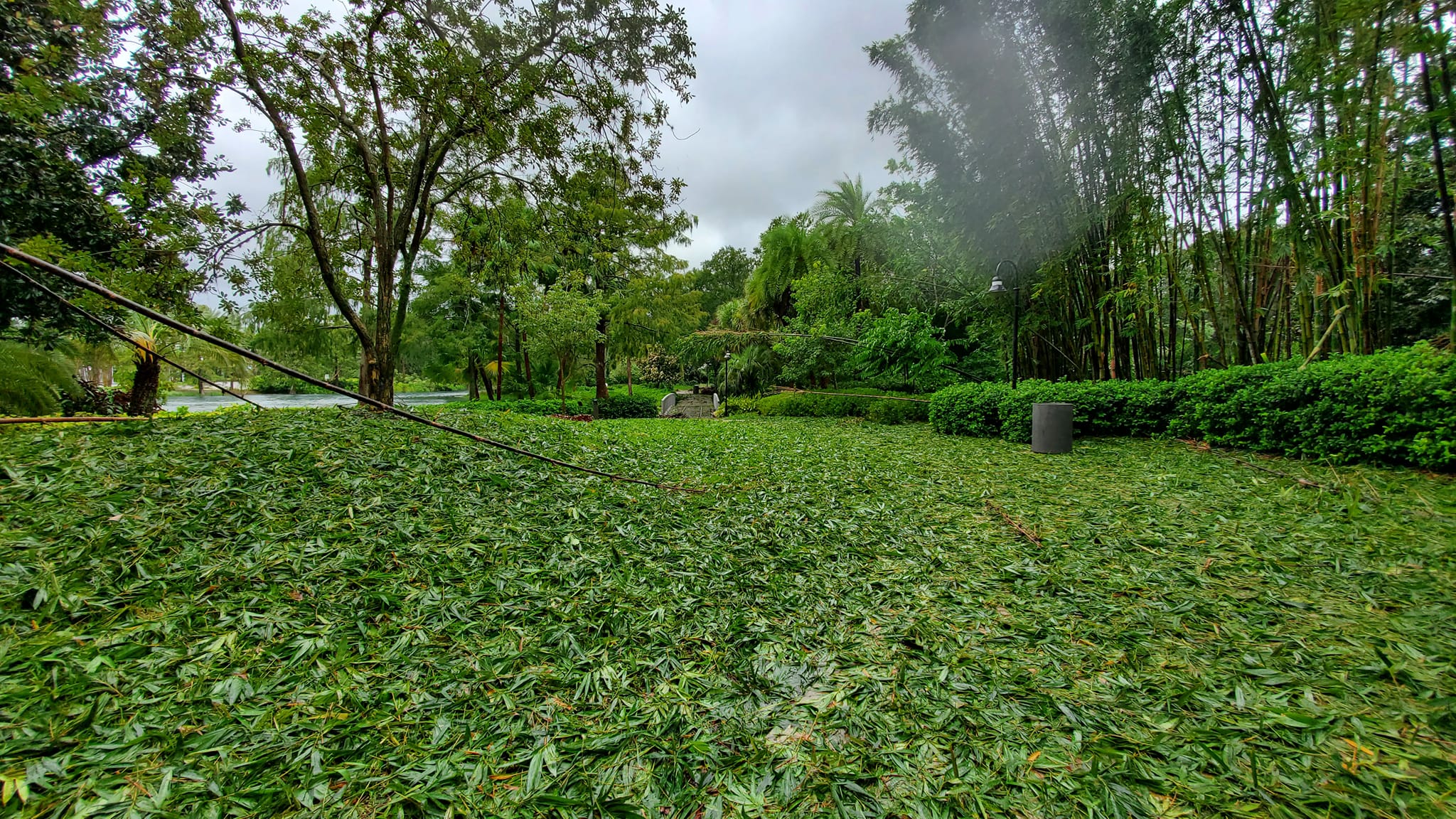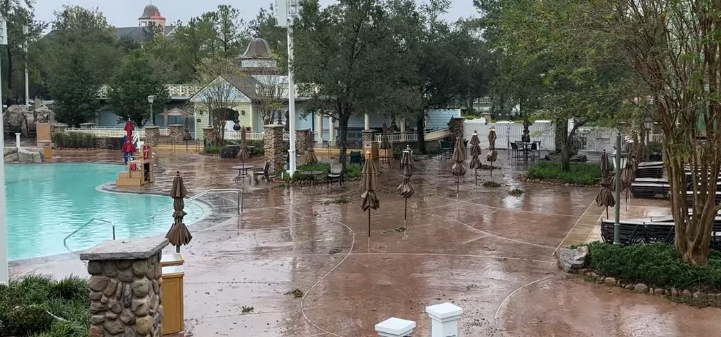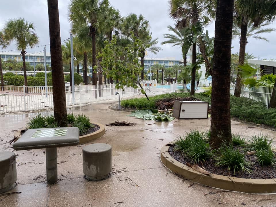Here are a few from Saratoga Springs Resort and Spa. Some limbs down and debris, and a very full pool.
