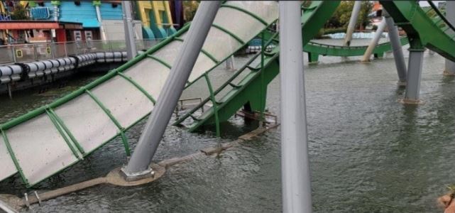 I was able to find the most photos from Universal Orlando Resort. Sadly, we know of two attractions being damaged and underwater. Jurassic Park River Adventure and The Hulk Coaster in Islands of Adventure.