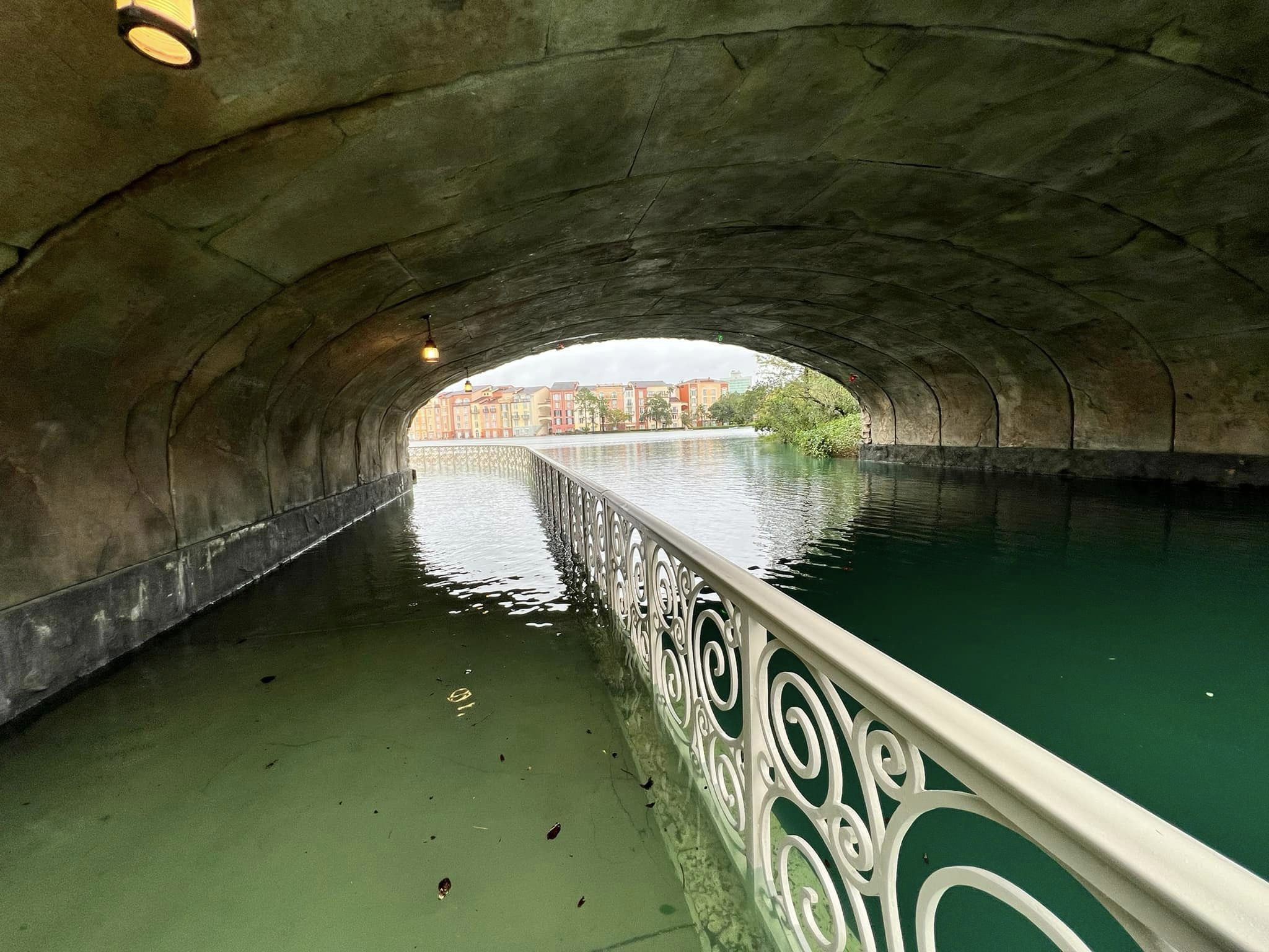 Portofino Bay Resort and the walkway were a bit easier to find, although hard to look at. It’s not easy seeing the resort underwater.