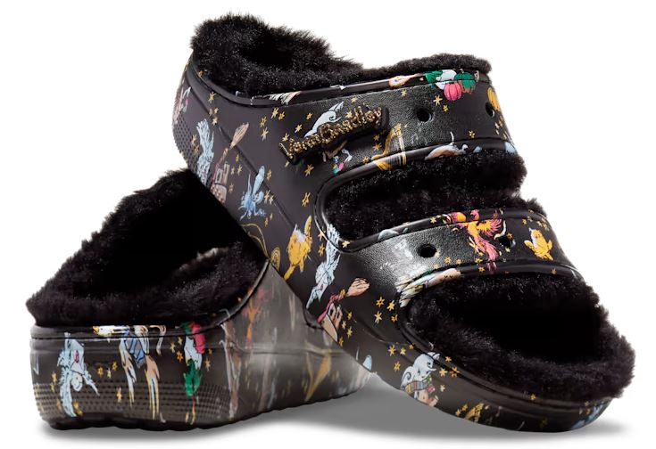 The Classic Vera Bradley Harry Potter Cozzzzy Sandal is lined with a comfy black fuzzy liner. They’re $54.99.