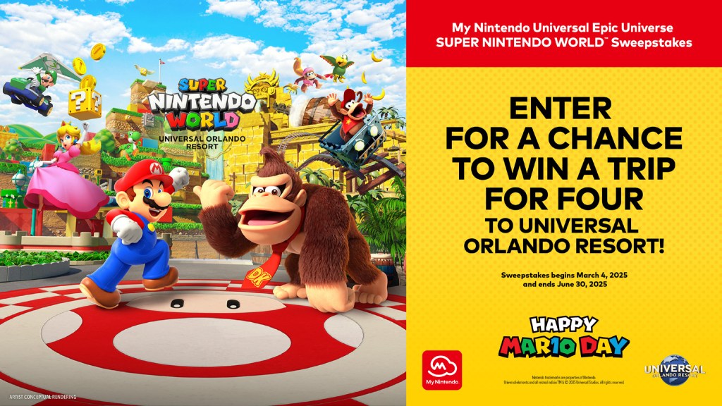 Nintendo – Sweepstakes is open only to individuals who are legal residents of the 50 United States or the District of Columbia who are 18 years old or older at time of entry. The Sweepstakes begins on Tuesday, March 4, 2025 at 12:00 am and ends Monday, June 30, 2025 at 11:00 pm PST. Limit five (5) entries per person.