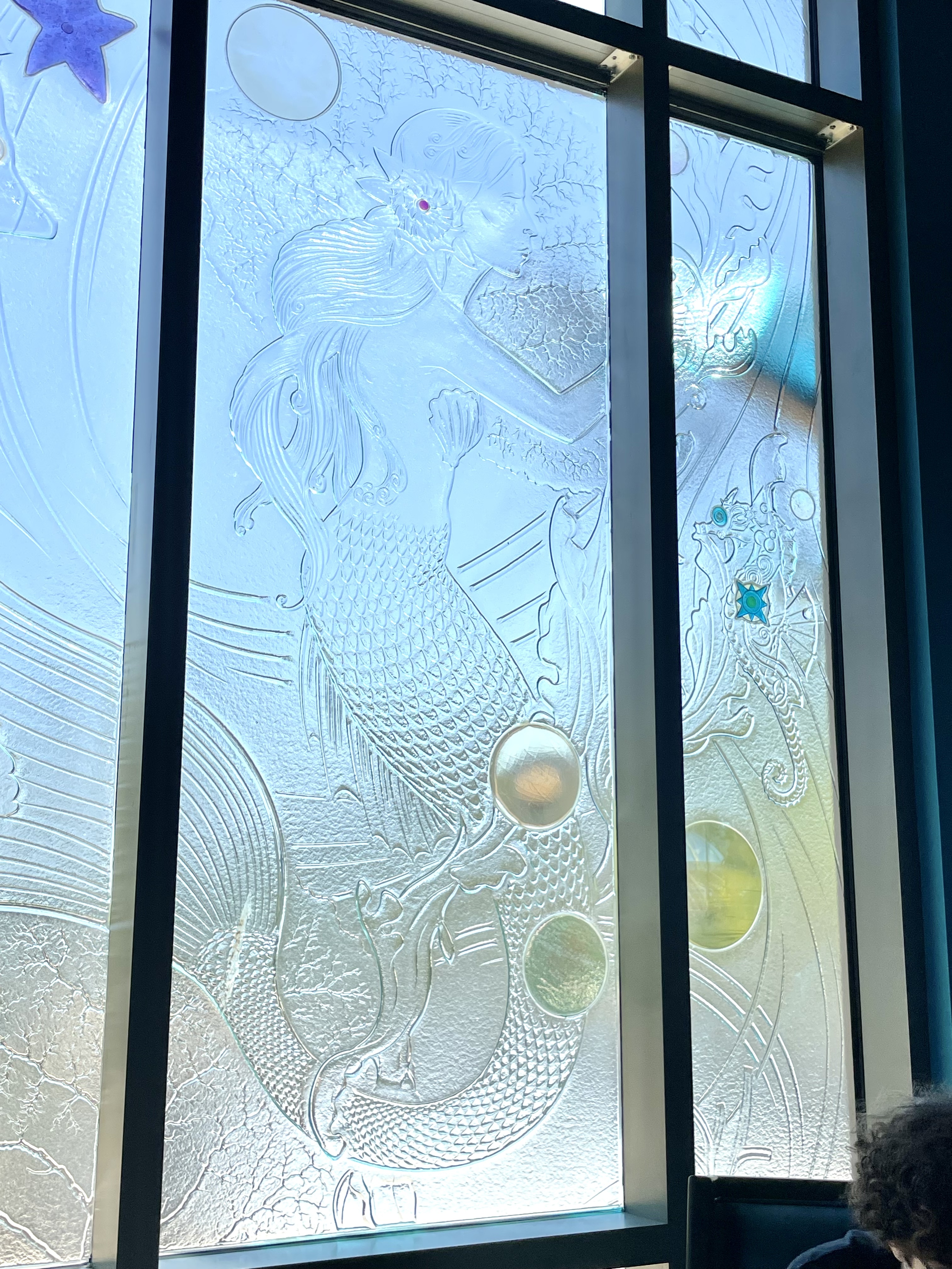 Atlantic is styled as a Victorian aquarium and from the moment you step inside, you feel as though you are under water. The host greets you at a diving bell helmet, seahorses adorn the staircase to the dining room, and mermaids are in the windows.