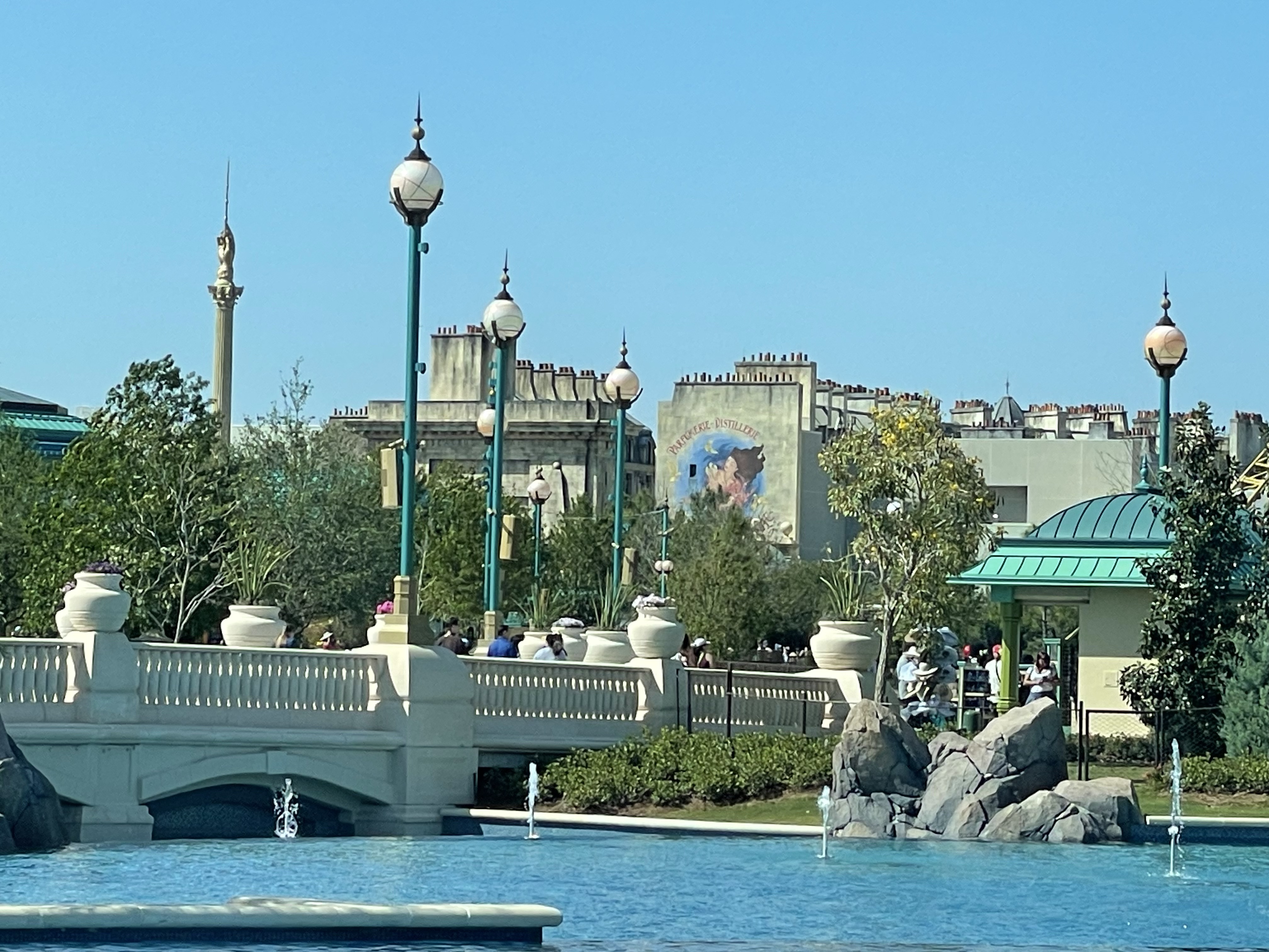 You can see, what is sure to become a favorite, Stardust Racers in Celestial Park when you look across the pool and fountain.