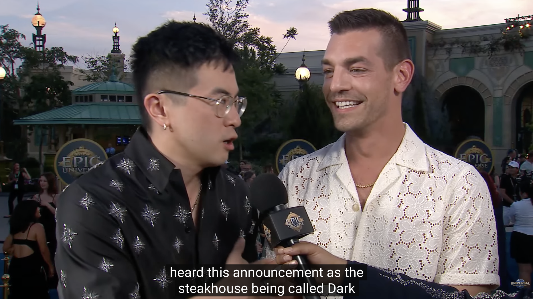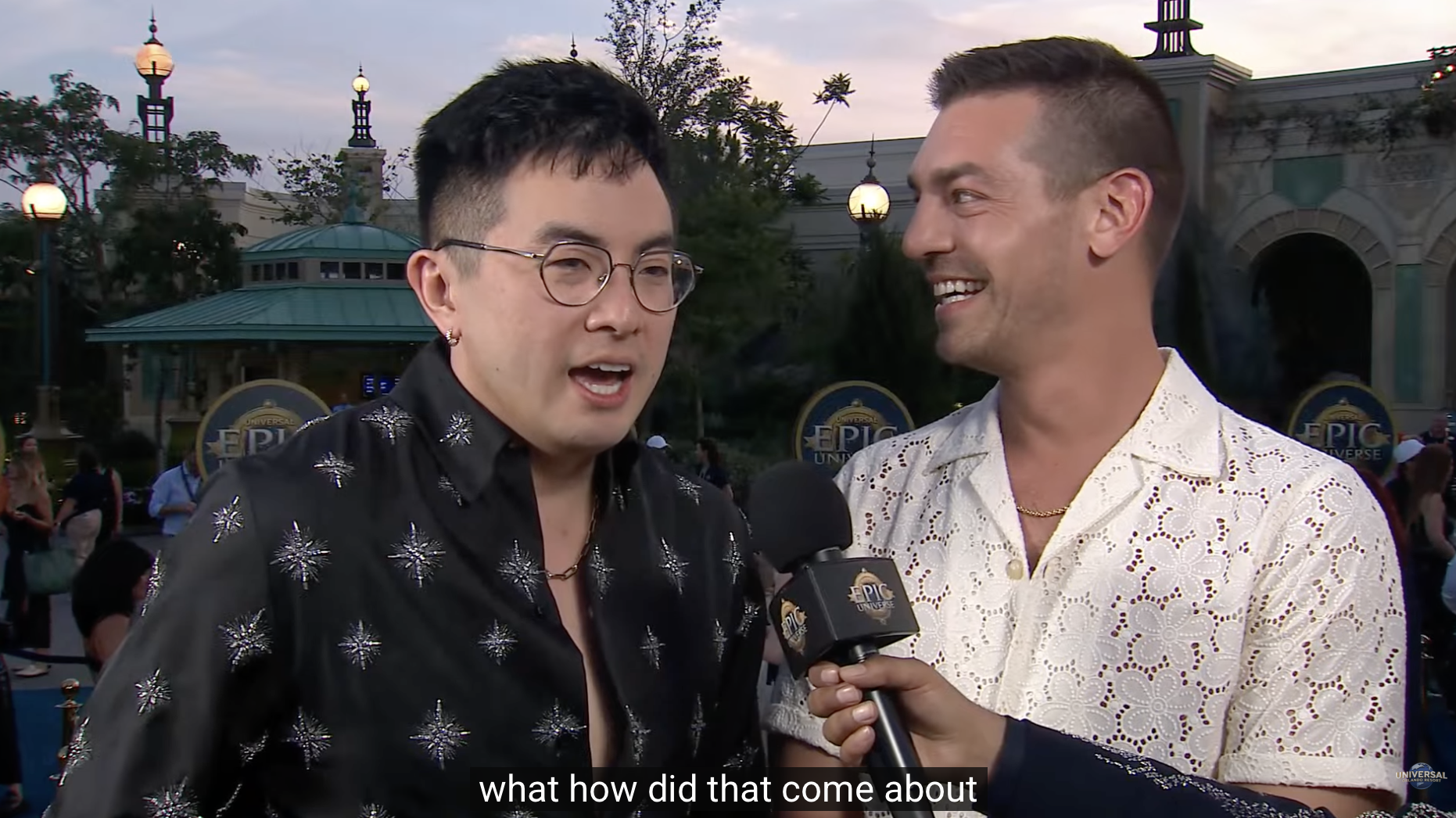 Bowen Yang is an American actor, comedian, podcaster, and writer known for Saturday Night Live and Wicked. He was at Epic Universe with Matt Rogers who is an American comedian, actor, writer, podcaster, television host, and recording artist. He is best known for co-hosting the pop culture podcast Las Culturistas with Bowen.