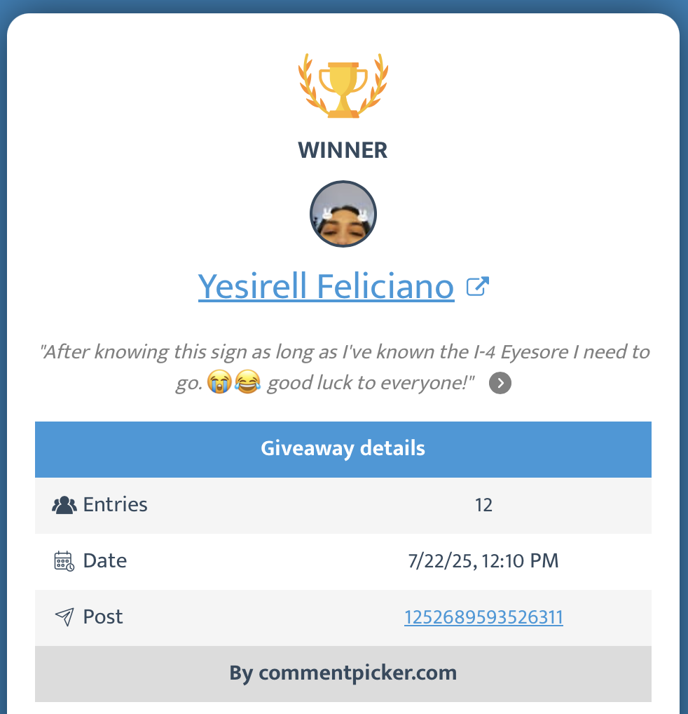 - Once a winner has been chosen and has responded I will make an announcement of congratulations.