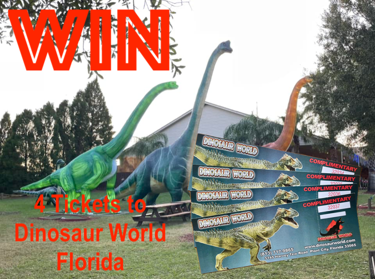 Win 4 tickets to Dinosaur World Florida! Instructions for entry are inside!